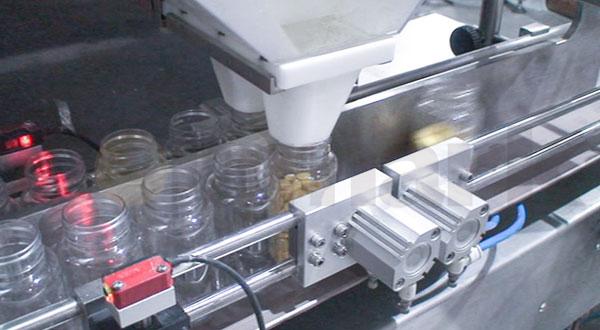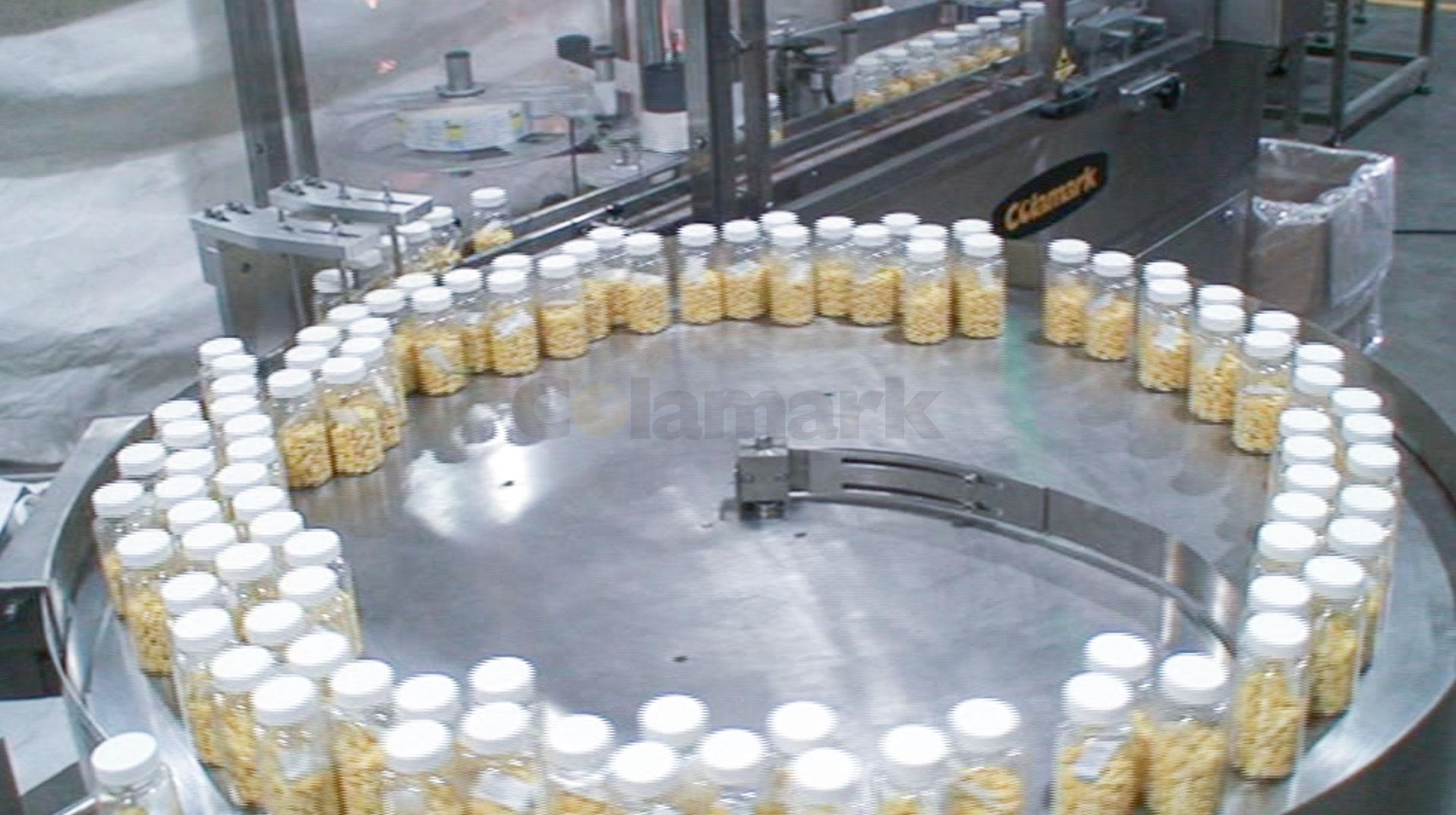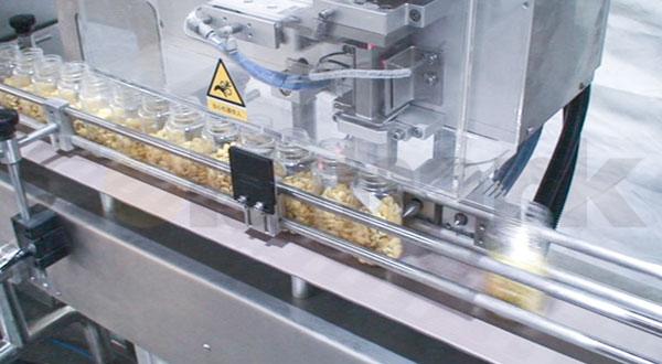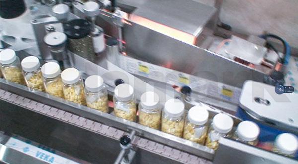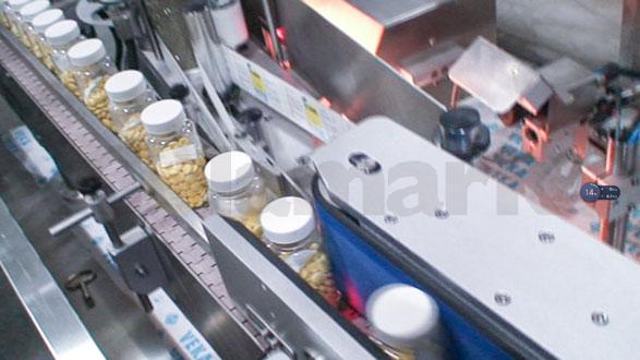 高速理瓶機(jī)采用轉(zhuǎn)盤結(jié)合氣吹轉(zhuǎn)瓶方式,簡(jiǎn)單快捷地將凌亂的塑料瓶整理好,并整齊有序地輸送到瓶裝線上,通過(guò)分瓶機(jī)構(gòu)輸送至視覺(jué)數(shù)粒機(jī)下;數(shù)粒機(jī)檢測(cè)到瓶子后,根據(jù)用戶設(shè)置的瓶裝數(shù)量將藥片高速填裝;而后經(jīng)過(guò)干燥劑投放工位,干燥劑投料機(jī)把成卷狀的干燥劑包分切成單包狀態(tài)并投入到瓶子中,之后輸送到旋蓋工位。此時(shí)旋蓋機(jī)旁的來(lái)料檢測(cè)電眼檢測(cè)到瓶裝完成的物料,同步向瓶子下蓋,接著旋蓋機(jī)采用多對(duì)旋緊輪把瓶蓋逐步旋緊,同時(shí)對(duì)旋蓋不到位的瓶子進(jìn)行檢測(cè)剔除,保證了旋蓋機(jī)的輸出質(zhì)量。此時(shí),旋蓋后的瓶子經(jīng)過(guò)磁感鋁箔封口機(jī)進(jìn)行鋁箔封口 。隨后便通過(guò)稱重工位進(jìn)行測(cè)重。達(dá)爾嘉數(shù)粒瓶裝系統(tǒng)所搭配的稱重檢測(cè)系統(tǒng)均是世界知名品牌,精度極高,進(jìn)一步的保證了數(shù)粒裝瓶時(shí)在數(shù)粒數(shù)量上的正確率,不達(dá)標(biāo)的產(chǎn)品將被自動(dòng)剔除。達(dá)標(biāo)后的瓶子進(jìn)入貼標(biāo)工位的緩沖區(qū),然后再進(jìn)入立式貼標(biāo)工位。貼標(biāo)工位方面客戶可以根據(jù)自身需求選配不同的機(jī)構(gòu)模塊,如賦碼標(biāo)識(shí)(生產(chǎn)日期賦碼、可用于溯源的二維碼、條碼)、賦碼檢測(cè)、賦碼掃描采集等等。同時(shí)亦可根據(jù)客戶需求量身定制。