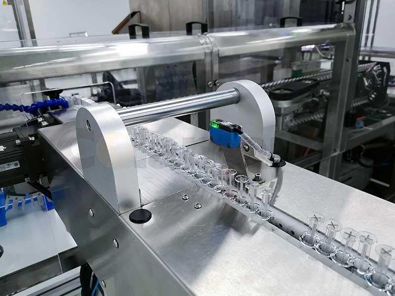 專門為預(yù)充針管泡罩包裝線而設(shè)計(jì),解決了預(yù)充針管泡罩包裝機(jī)生產(chǎn)速度與其上游設(shè)備預(yù)充針管擰桿貼標(biāo)速度的協(xié)同關(guān)系,保證泡罩包裝系統(tǒng)物料的不間斷供應(yīng)以及避免上游系統(tǒng)出現(xiàn)堆料的問題,使泡罩包裝線的生產(chǎn)率達(dá)到最佳飽和狀態(tài),是預(yù)充針管泡罩包裝線的常配設(shè)備。