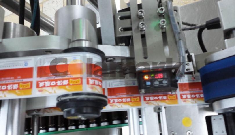 臥式圓瓶貼標(biāo)機(jī)+臥式入托機(jī)+對角封口貼標(biāo)機(jī)應(yīng)用