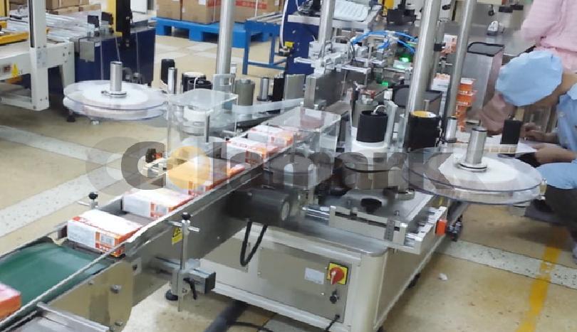 兩款設(shè)備來實現(xiàn)相關(guān)的需求,由于貼標(biāo)入托的速度太快,而客戶采用的是人工裝盒,以至于出現(xiàn)現(xiàn)有裝盒工人忙不過來的情況,以下是生產(chǎn)現(xiàn)場照片與視頻。