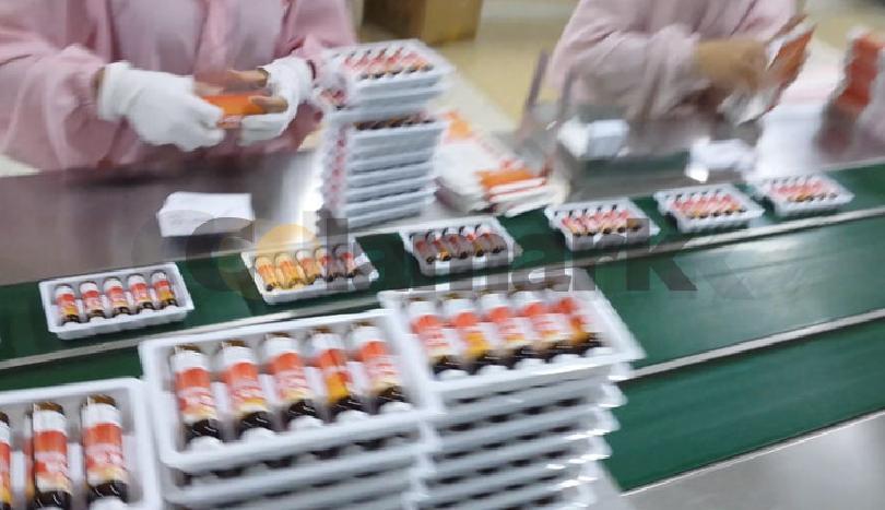 這是一家至今有近兩百年歷史,被公認(rèn)為涼茶始祖的客戶,有多條生產(chǎn)線,用于生產(chǎn)一種治療腹痛吐瀉,噎食噯酸,惡心嘔吐,腸胃不適,消化不良,舟車暈浪,四時感冒,發(fā)熱頭痛的口服液,生產(chǎn)線中涉及到口服液的貼標(biāo)、入托、裝盒、封口條碼檢測工序,客戶采用了達(dá)爾嘉