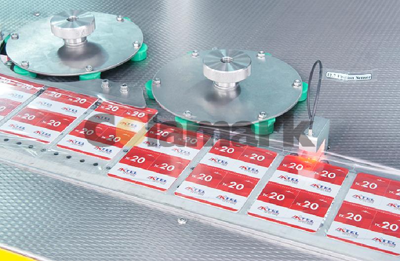Cardspak卡片包裝機適用于制卡行業(yè)對各種預(yù)付卡、磁卡、信用卡等卡片實現(xiàn)自動包裝。采用光電檢測,輸送帶為無級變頻調(diào)速,具有包裝美觀、精度高、速度快、收料整齊的優(yōu)點。同時具有自動分料、自動焊雙邊、自動切易撕線、自動收廢邊、自動封口、自動分垛、自動檢測、料少報警等功能。 卡片包裝機系統(tǒng)可根據(jù)客戶需求選擇下列工作流程: 發(fā)卡器→重卡檢測(可選項)→包裝膜松卷→切易撕線→超聲波制袋→裝卡→超聲波封口→切邊→收廢邊→分垛→折卡→收料。